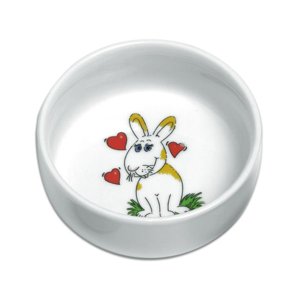 Tavşanlar için, temizliği kolay, hayvan motifleriyle süslü seramik mama kabı. 300 ml. 11 cm çapında.